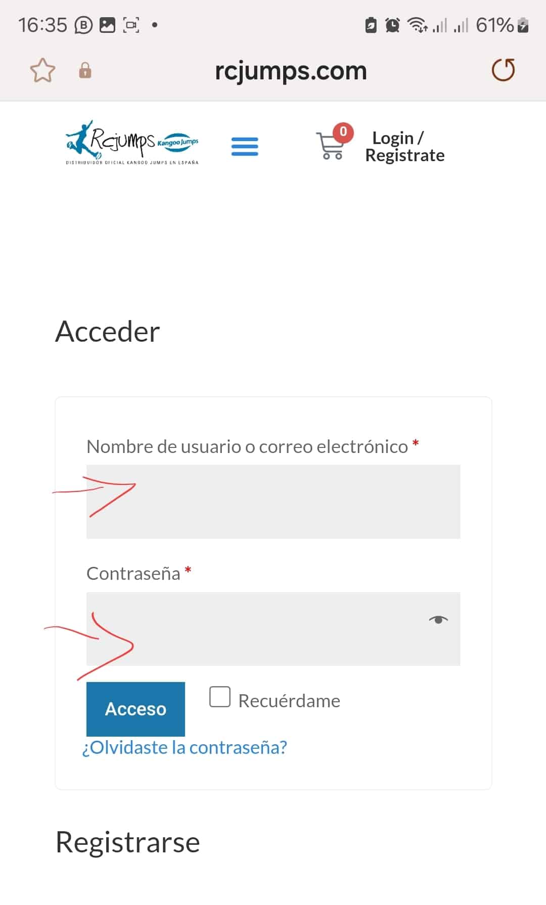 Regístrate en https://www.rcjumps.com y una vez puesto el correo y contraseña, dirígete al panel de DIRECCIONES para rellenar TODOS los campos.